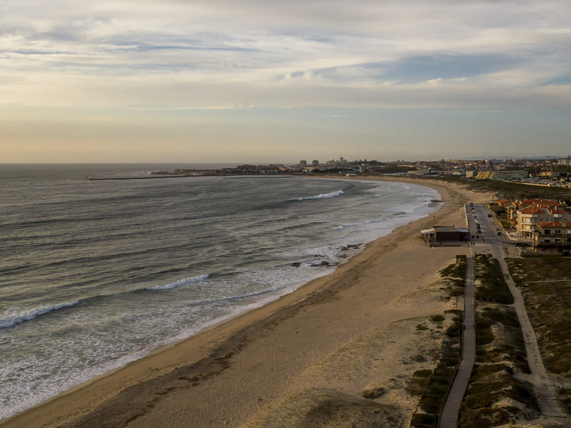 Surrounded by dunes and green areas, the beach provides a tranquil setting for families and travelers searching for relaxation close to Porto.